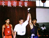 拜尹伟教授为师学习散打多年。跟随通背拳名师研习通背拳多年,具有很深的武术功底。曾获99年‘神武杯’散打对抗赛亚军。2000年北京市‘航天杯’武术散打擂台大赛冠军。在搏毅堂授课多年,有丰富的教学经验。 |
