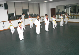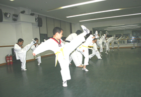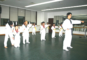 一、礼仪及精神气质的培养:将跆拳道精神“礼仪、廉耻、忍让、克己、百折不屈”贯彻在教学中。