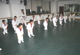二、跆拳道技术:针对儿童特点特别编制课程:身体柔韧性训练、身体协调性训练、腿法基本功。