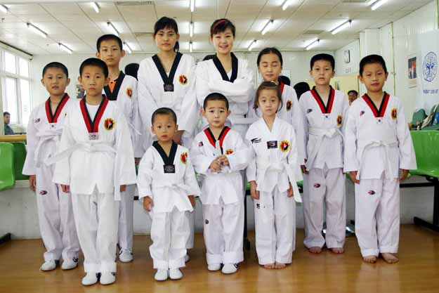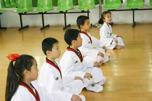 二、跆拳道技术:针对儿童特点特别编制课程:身体柔韧性训练、身体协调性训练、腿法基本功。