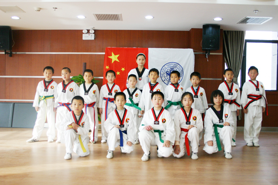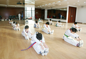 二、跆拳道技术:针对儿童特点特别编制课程:身体柔韧性训练、身体协调性训练、腿法基本功。