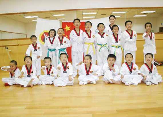 二、跆拳道技术:针对儿童特点特别编制课程:身体柔韧性训练、身体协调性训练、腿法基本功。