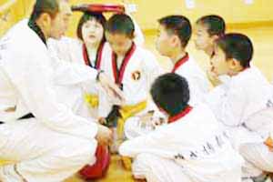 一、礼仪及精神气质的培养:将跆拳道精神“礼仪、廉耻、忍让、克己、百折不屈”贯彻在教学中。