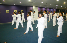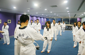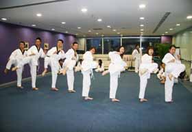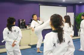 道课程教授跆拳道。培养员工的团队精神,锻炼员工的意志品质,收到了良好的训练效果。 |